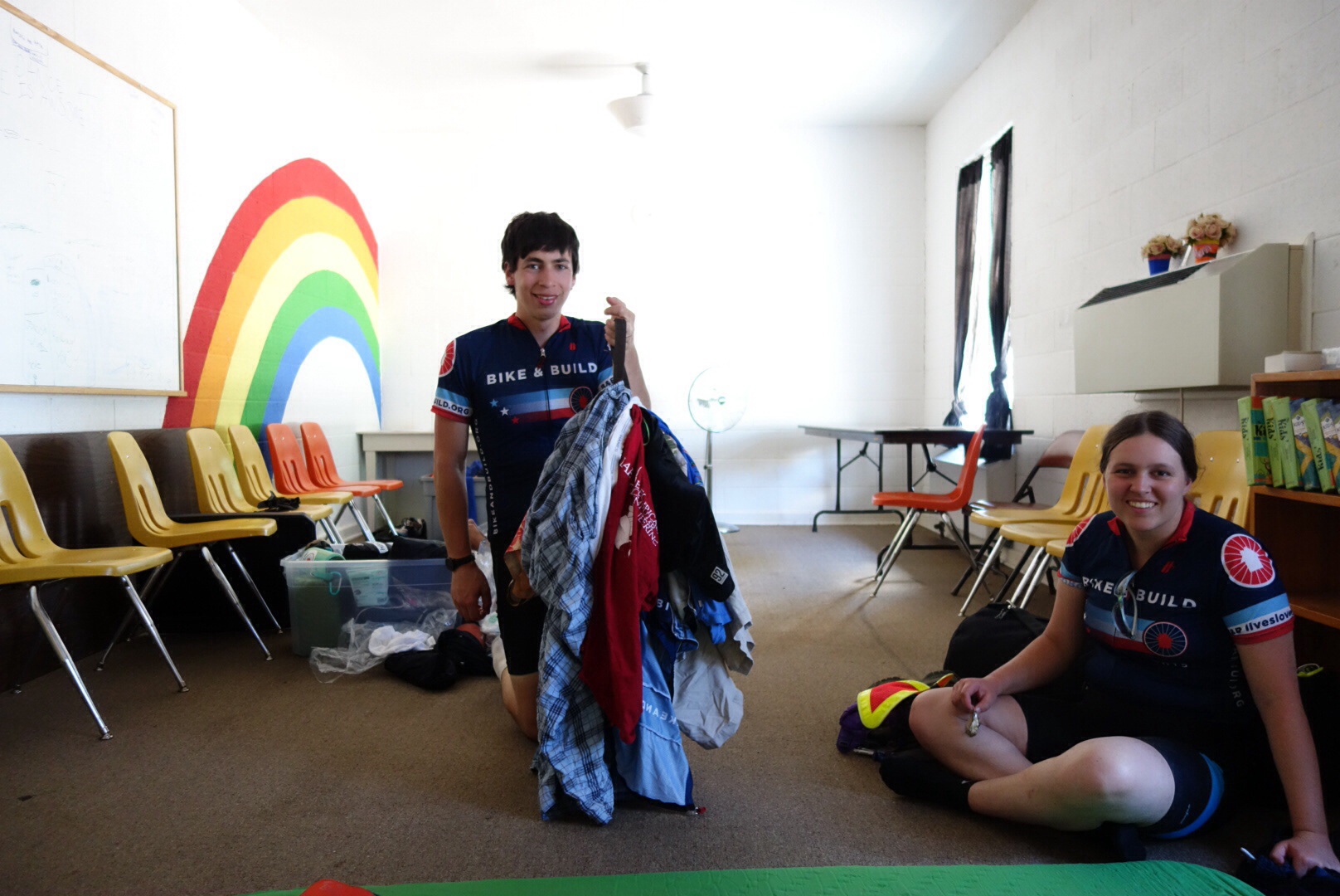 By Ben Nitkin on May 31, 2015 at 23:56 Stopping for a while at a river under the road. A semi buzzes by our bikes. Stopping at a gas station to "fuel up" the bikes and ourselves (we run on ice and Clif bars) 20 miles from the finish line (phew) we passed some girls fundraising for a HS graduation. Donuts are tasty. View from the roadside. This was our view for the whole day, translated by 10'. Laundry laundry laundry. On a loop to keep everyone's stuff apart. Clean clothes!