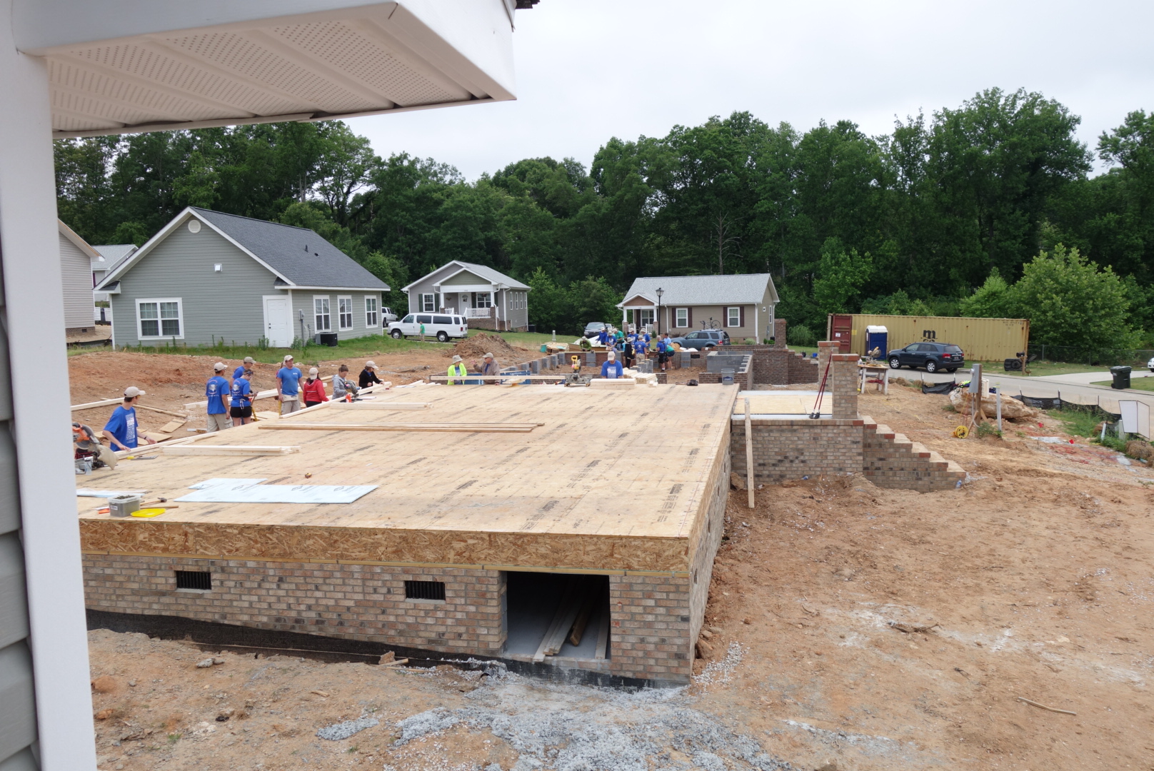 Today we worked in a small Habitat development. Helen told me the brief story: the city had brought in roads, sewer, and water for a contractor, but he fell through. They offered Habitat the proprrty for $29,000, and Habitat bought it. The subdividsion is mostly developed now and contains a mix of houses built by Habitat for Humanity and Homes for Hope.