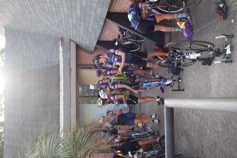 Resting on the roadside after a big hill.