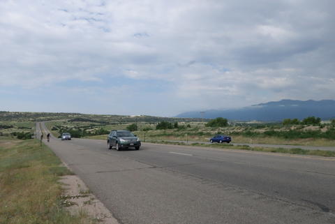 We had two choices of route today: either ride 116 miles through back roads (maybe mountains, maybe plains) or ride 54 miles on highway 25 (riding on the highway is legal in some sections). As a group, we voted to take the highway and be careful riding. It wasn't an especially pretty day, but the low mileage was nice.