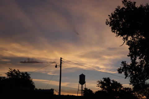 I uploaded almost the same photo yesterday: a water tower with dawn clouds behind.