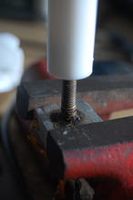 Towards the end of last summer, I realized that the old hobbed bolt - the thing that drives filament into the hot end - had worn out. Hobbing is threading on the bolt that grabs the filament and drives it into the hot end. The printer doesn't print so well when it can't push filament.